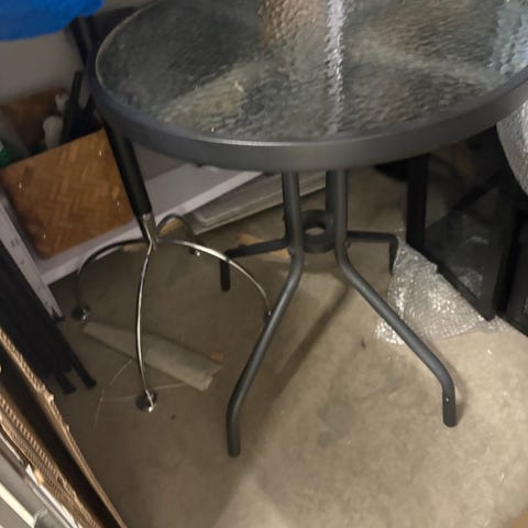 Cafébord, Altan bord, metal, I perfekt stand. Metal og glas. Ø:50cm. Plastic dims ved fodder.