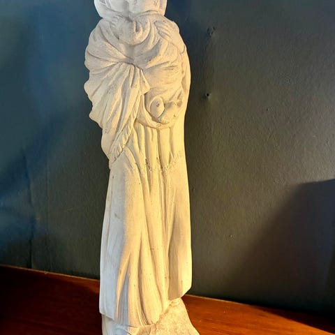 Stenskulptur livmoder med foster baby SE FOROS
