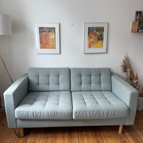 2 pers. sofaen har en skade på det ene armlæn (buler ned)