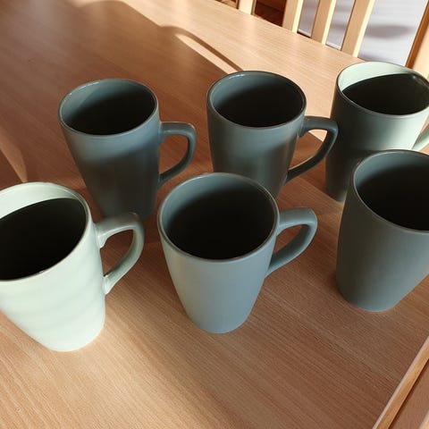 4 kopper med ske og underkop