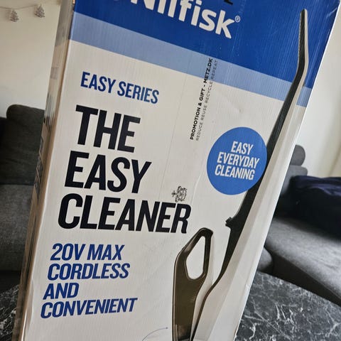 Nilfisk 2-in-1 støvsuger med trådløs funktionalitet i sølvfarve. Velegnet til rengøring af forskellige gulvtyper og mindre områder. Inkluderer en opladningsstation. Designet til nem håndtering og opbevaring.