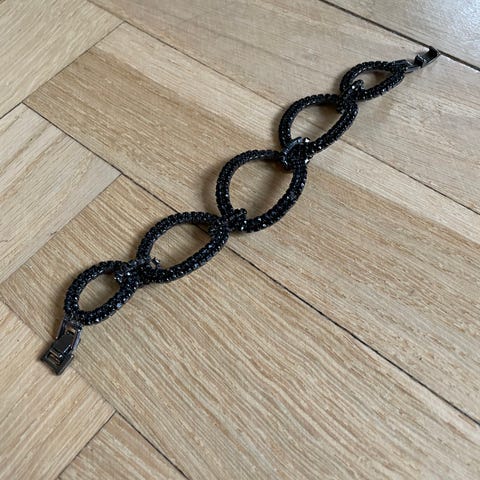 Bredt armbånd med glassten. Der mangler er par stykker.