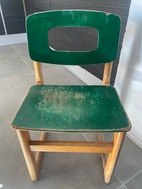 Hukit børnestol fra 1978 - med masser af charme og sjæl / patina. Bærer præg af at den har været brugt flittigt