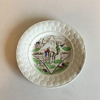 Johnson Bros Old Britain Castles tallerken med en diameter på 17 cm Tallerkenen har et dekorativt mønster med motiver af slotte og landskab i farverne brun, grøn og rosa. Fremstillet i porcelæn.