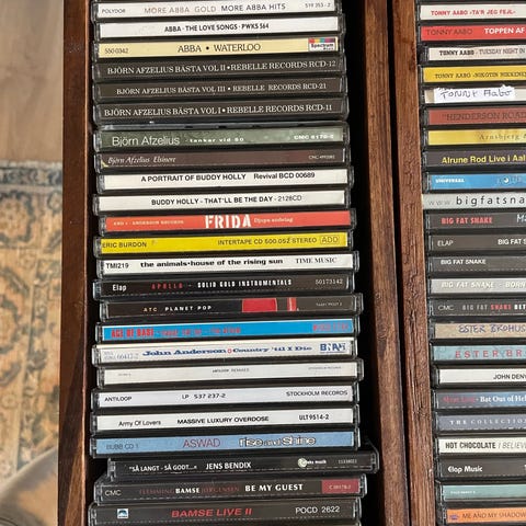 En samling af musik-CD'er med forskellige kunstnere og genrer. Indeholder flere album med forskellige musikstilarter og kunstnere. CD'erne er i standardformat og kan anvendes i almindelige CD-afspillere. 13 stk, Per stk 10 kr - alle for 100 kr