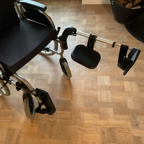 Kørestol af mærket panthera fastrammet kørestol.sædebrede 44 cm dybden på sædet 50cm håndcykel der virker på den måde man presser håndtaget ned så er der fremdrift har 8 gear alt virker og det er god motion, sælges samlet ,