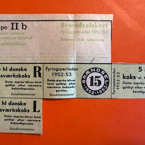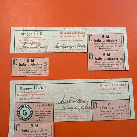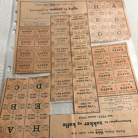 2 ark med navn - Sukker og Kaffe Juni 1952 - januar 1953