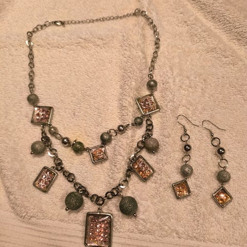 Lapis Lazuli vedhæng - med guldfarvet halskæde - samt ørestickere.