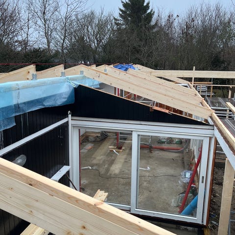Hæveskydedør 159,8x204,5cm, den gående del i træ/alu med 3-lags sikkerheds energirude. Der er monteret hæveskydedørsgreb på indvendig side og cupgreb på udvendig side. Der medfølger en skinne, som formentligt kan klikkes på enden. Døren er ny men har rød tape limrester. OBS det er kun den gående del af en hæveskydedør og ikke en komplet hæveskydedør. Dimension B:159,8 X H:204,5 X D:7cm Se evt. lignende artikler her: https://kingogenbrug.biz/vare/dobbelt-terrassedoer-117-x-216-cm-uden-karm/