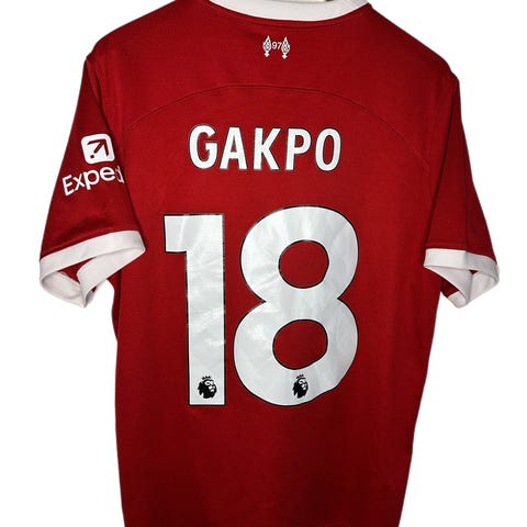 Sælger denne helt nye Liverpool trøje med Cody Gakpo bagpå. Trøjen er 100% ægte og har stadig pristag på sig. Det er en player version, hvorfor trøjen koster over 1300,- for ny.