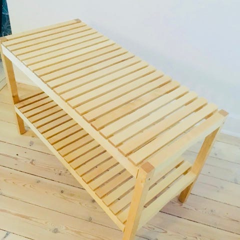 Fin bænk i træ med god plads til opbevaring. Formentlig teaktræ, men jeg er ikke 100 sikker - derfor den lave pris