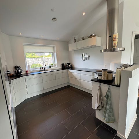 Køkken sælges kun som en samlet pakke inkl. bordplade - uden sokkel – altså ikke som enkelte moduler/elementer.