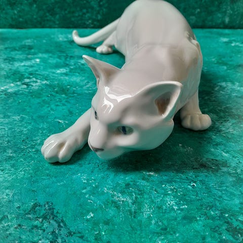 Sender gerne: 1. stk sjælden stor hvid 'Snigende kat' fra Royal Copenhagen.