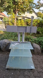 Tv bord til faldskærm med 3 glashylder og hjul. Super nemt at kører rundt. Og mega praktisk hvis man ikke har så meget væg plads