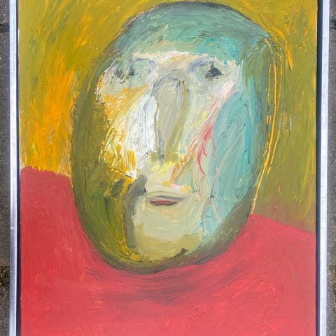 Tjubang Mikkel Oliemaleri Olie på lærred i sølv træramme med ansigt motiv.