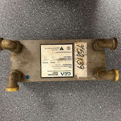 Varmeveksler, Pladevarmeveksler, Ny pladevarmeveksler, 1" gevind og loddetilslutning. Dim: 11x28x5 cm - 18 plader .Har 2. pr stk