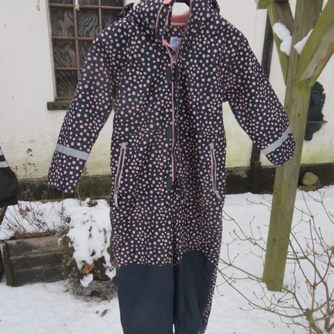 Flyverdragt til pige i størrelse 92 med lilla ærmer og grå krop. Materialet er velegnet til udendørs brug og beskytter mod vind og vejr. Dragten har elastik i taljen og ved anklerne for bedre pasform og komfort.