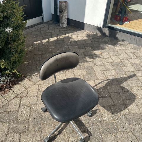Pæn kevi kontorstol med sort læder designet af Jørgen Rasmussen køre godt på hjul da jeg har haft dem af og rense dem. Rigtig pæn I læder. Virker som den skal også pæn I stellet. Med gaspatron justere op og ned. Kan leveres efter aftale på Sjælland fra rygefri hjem dødsbo