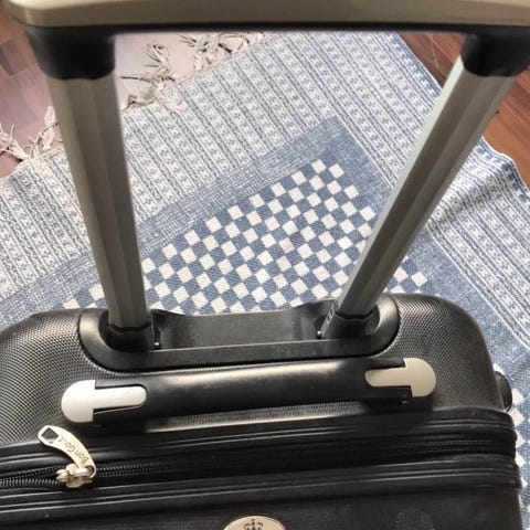 Kuffert, Bon Gout, b: 50 l: 30 h: 70, Dejlig stor sort Bon Gout kuffert. Mål i dybden kan være 27 cm eller ca 31 cm alt efter om man lyner op for ekstra plads. Den er pæn og velholdt og har været dyr men... den har været på en flyvetur hvor man har revet håndtag foroven itu. Dette har min far repareret for mig så det fungerer. Se billede. Forneden har man smadret en plast kant hvilket jeg ikke synes har betydning. To gode hjul samt kørestang fungerer optimalt. Masser af god plads. Sort og pæn.