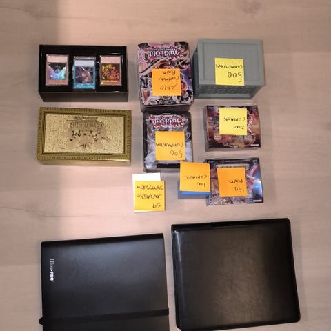 Jeg sælger hele min samling dag jeg ikke føler jeg leger har råd til at spille mere. Samlingen består mest a Structure Decks og decks jeg selv har lavet, kan ikke huske all Structure Decks men de decks jeg selve lavet er "Red eyes", "Red eyes archfiend", "Red eyes Zombie Dragon", "Galaxy eyes", "Elemental hreo" and "Destiny hero". Der i alt 14 Link kort, 13 Synchro kort, 44 Fusion kort, 55 XYZ kort, 431 Effect monsters kort, 67 Normal monster kort, 6 Ritual monster kort, 237 Spell kort, 176 Trap kort