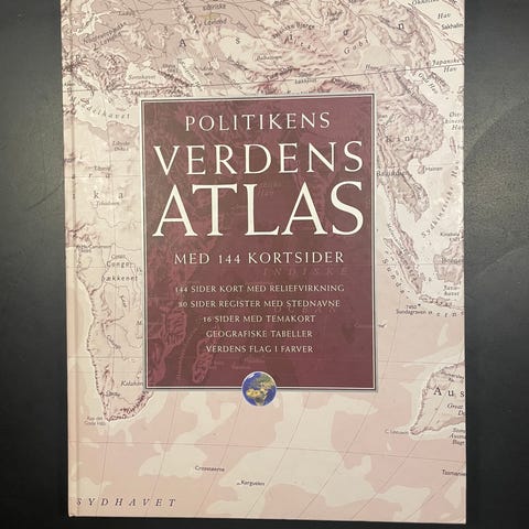 Politikens Verdensatlas med 112 kortsider er i et stort format: 32x24 cm. Det indeholder detaljerede kort i forskellige skalaer. Hertil kommer geografiske tabeller, et detaljeret register, og flag. Det er udgivet og indbundet af Politiken i 2001 for at give oversigt over verdens lande, kontinenter og geografisk information,