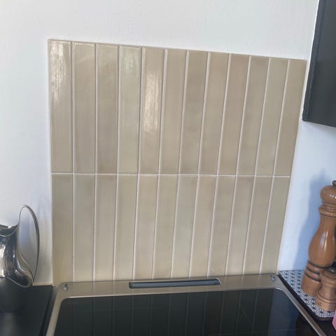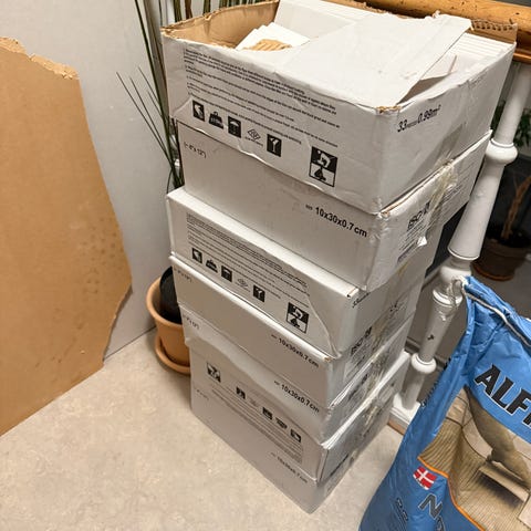 Jeg har 154 stk i modellen Metro, i farven “Pear off”. Desuden en del ekstra fliser som er skåret til.