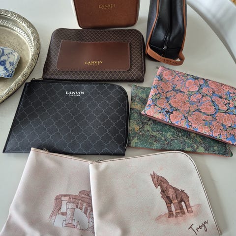 Et åbnet og et uåbnet som indeholder det sædvanlige som tandbørste og tandpasta og sokker. Prisen er pr. taske, ikke for begge. Rabat gives på den åbnede.