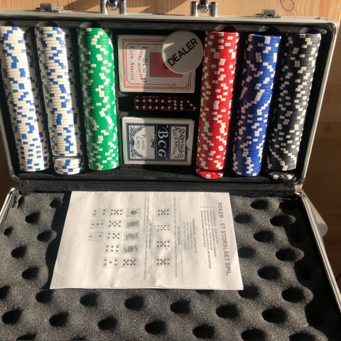 Dette poker sæt indeholder 2 sæt nye kvalitets spillekort fra Betsson, 1 dealerknap og mange jetoner i forskellige farver. Sættet leveres i en aluminiumskuffert.