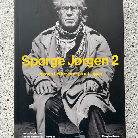 Her kan du alligevel sikre dig "Spørge Jørgen 2 : Jørgen Leth svarer på alt - igen" (2017): Den er (mærkeligt nok) anskaffet som udgået bog fra Halsnæs Biblioteker.