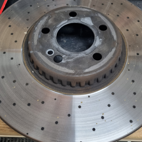 Helt nye bremseskiver og klodser til bagaksel, der mangler en låse bolt til skiverne, Mercedes A45 360hk. Årgang 2015