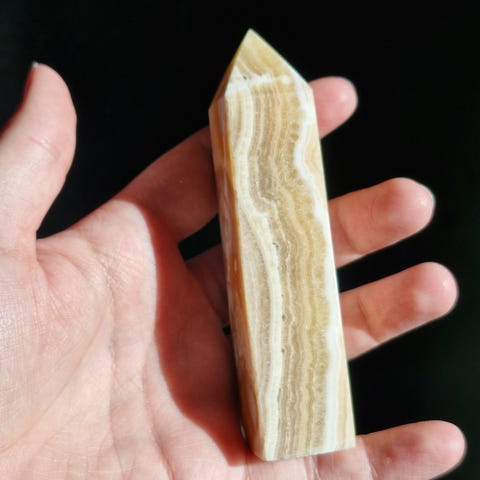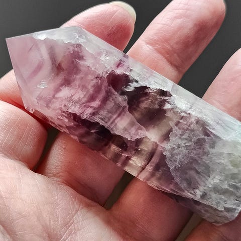 Flot obelisk af lilla stribet fluorit krystal. Måler ca. 7,5cm og vejer 114g.