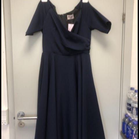 Kjolen har puffede ærmer og en u-formet ryg. Materialet ser glat og skinnende ud.,Afhentes i:,Røde Kors Tuborgvej / København NV (101),Bemærk at mail, chat og beskeder ikke besvares, og varen skal købes på knappen "Gå til varen"
