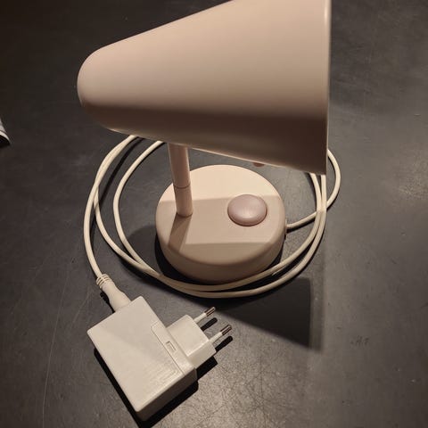 Væglampen “Fubbla” fra IKEA, passer godt til børneværelset. Der er indbygget dæmper, man drejer på knappen, og så dæmpes lyset til ca. 1/2 styrke. Monteres nemt med 2 skruer.