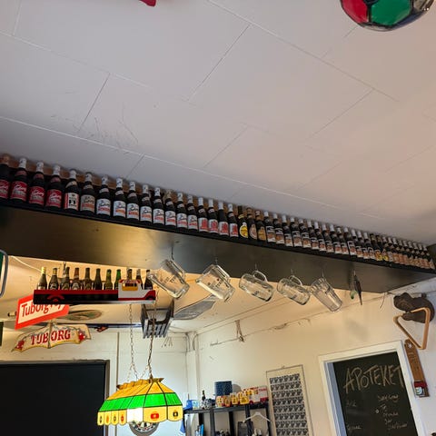 Tuborg, Grøn Tuborg, Ølflaske, Gammel øl, Snoet flaske, Skæv flaske, Novelty, Souvenir, Samleobjekt, Vintage, Retro, 1986, Bryggeri, Reklameflaske.