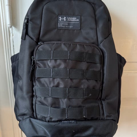 UA tactical rygsæk. Udgået model med et utal af lommer og funktioner. Bl.a. indbygget regnslag, holder til en geværkolbe, ammo-lommer. Ca. 25-30 liter.