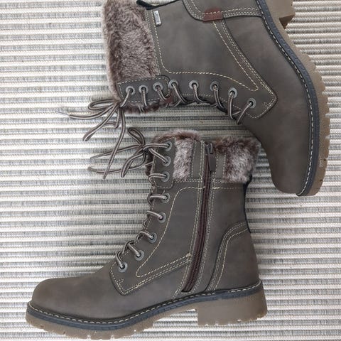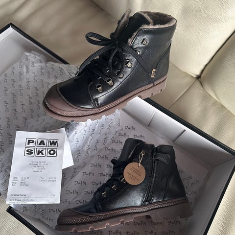 Læder skaft og slidstærk gummifod. Tykt, blødt og varmt foer.