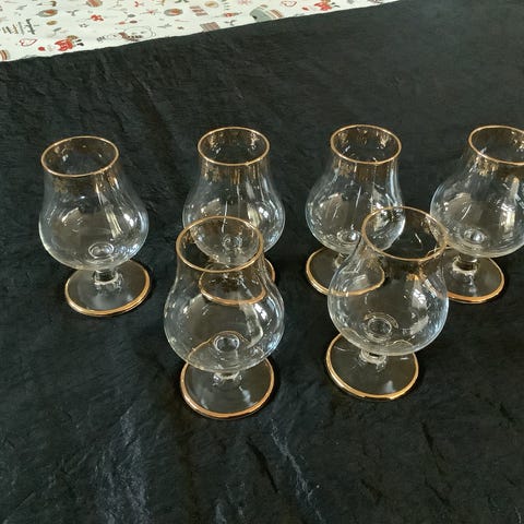Rummelige og smukke glas med guldspiral til whisky, cognac, rom eller anden spiritus, hvor duften er vigtig.