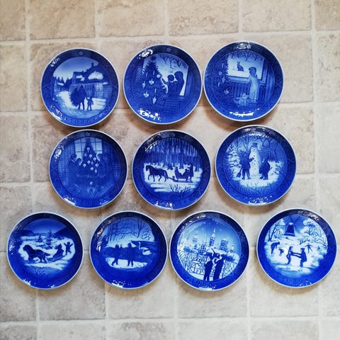 Juleplatter 1970-1979 fra Royal Copenhagen. De er alle fine og velholdte og i 1. sortering