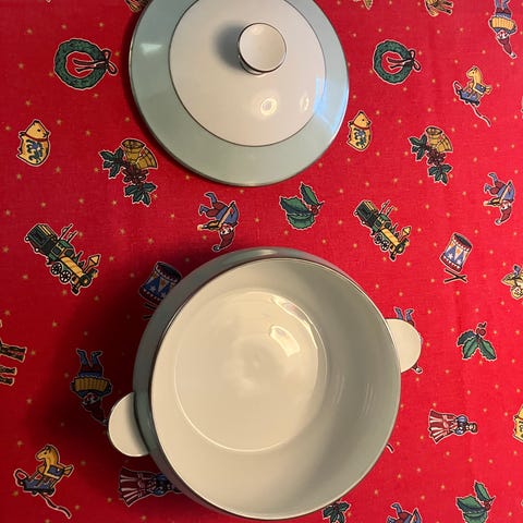 Bing og Grøndahl hvid lågskål i skelmønster.