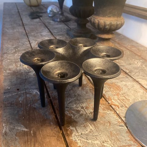 Lysestage, Erik Bagger, Helt ny lysestage fra Erik Bagger i kasse. Til alm lys. Har fået et lille hak på den nederste del, som skules godt, når overdelen er på. Dia hvor den er bredest 12 cm H: 10 cm.