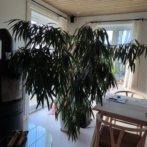 Ficus elastica stueplante med grønne, voksagtige blade. Planten er cirka 90 cm høj og leveres i en brun potte ø18. Velegnet til indendørs brug som dekorativ plante.