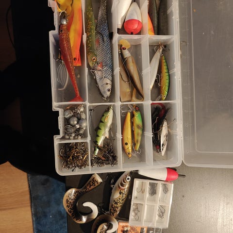 Der er alt muligt blandet, massere af forskellige ting kystblink, spinnere, gummi i alverdens farver, forskellige jighoveder, perler og kroge til f.eks at lave texas rigs.