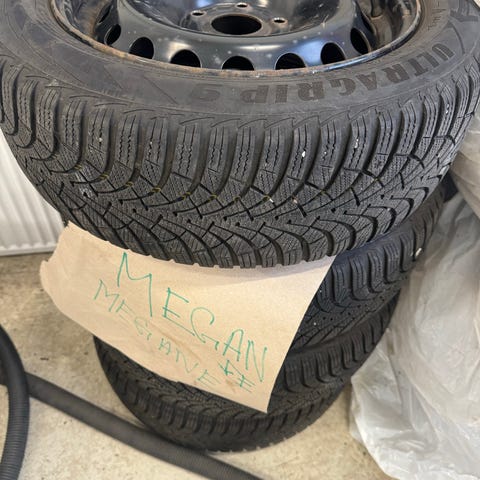 Ok vinterdæk på stålfælg, det ene dæk er lappet men har kørt fint et par sæsoner.