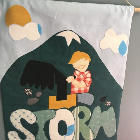 Sæt af vægophæng bestående af runde former i forskellige størrelser og farver: gul, lilla, rød, lyserød og naturligt træ, 8 stk