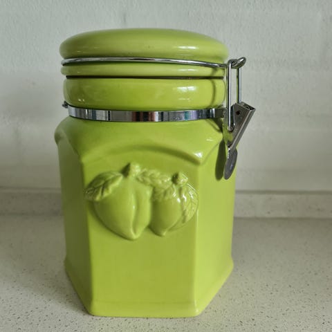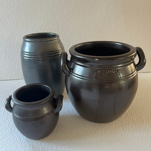 Gammel keramik krukke med messinghane