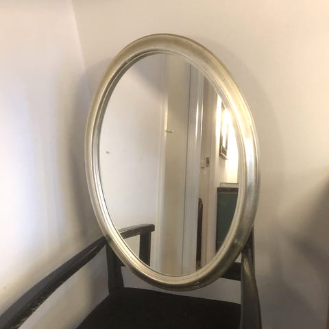 Spejlet er i rigtig god stand - glasset er klart, og rammen har kun minimale brugsspor, som passer perfekt til den autentiske patina man forventer af et ældre spejl.