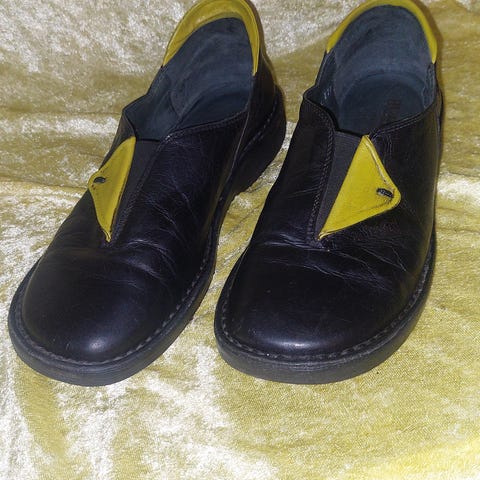 Bubetti flad læder sko, rummelig. Sorte med rød læder effekter, elastik over vristen.