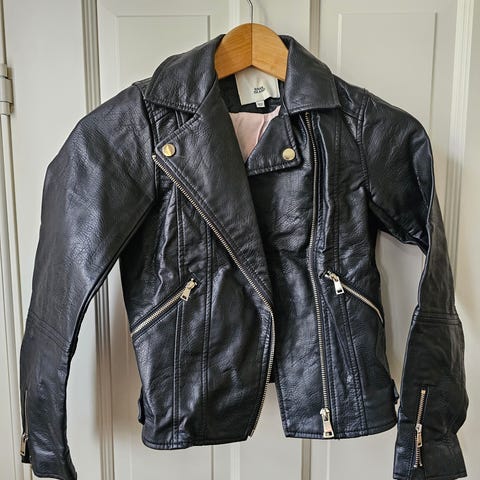 River Island pige læderjakke (imiteret) størrelse 152/11-12 år. Næsten helt ubrugt og i glimrende stand.
