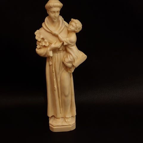 Stor figur af Jesus. Han står med udstrakte arme og er detaljeret i tøjet, inkl. et hjerte på brystet. Han er ca 75 cm høj.