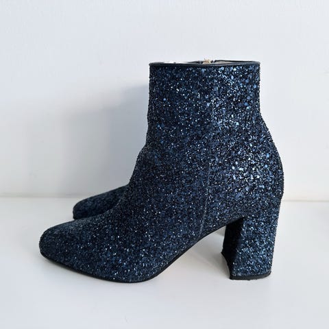 Lyserød glitterstøvle – brugt få gange. Hælhøjde: 6,5 cm.